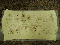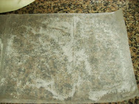 1º Tirar a massa folhada do papel vegetal e colocar açúcar no papel.